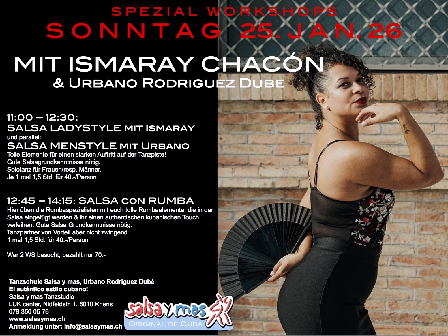 Wir freuen uns riesig, sie wieder bei uns zu haben! Ismaray aus der bekannten kubanischen „Los Aspirinas“ Familie ist in der weltweiten Salsaszene ein grosser Begriff! Anmeldung per sofort möglich!